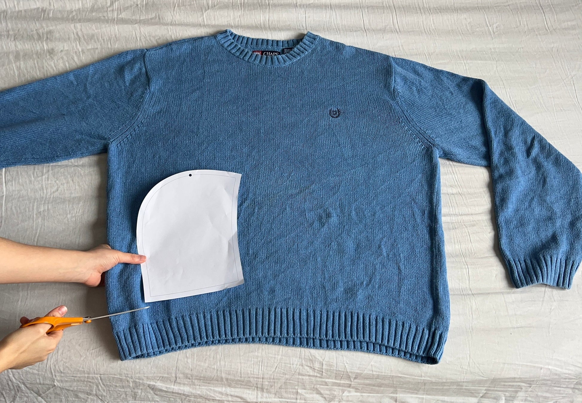 • Recommended fabric:  knit fabric that stretches. The example in the picture has been reformed with a sweater.