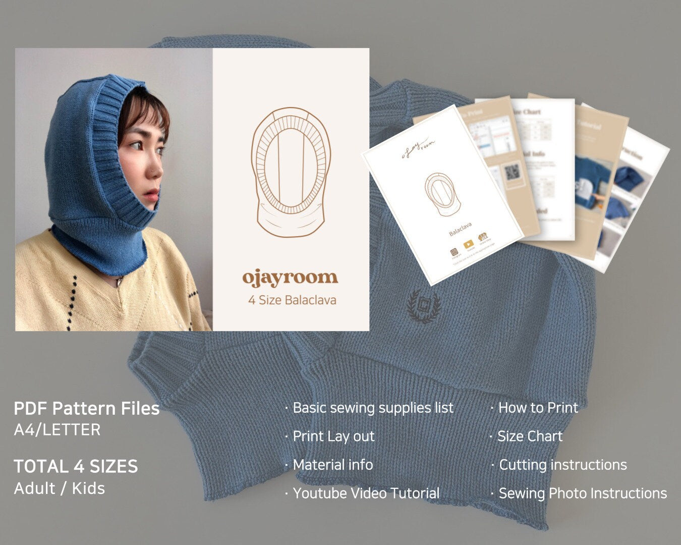 OJAYROOM's PDF pattern is an online digital pattern that can be purchased, downloaded, printed on a home printer and used immediately.