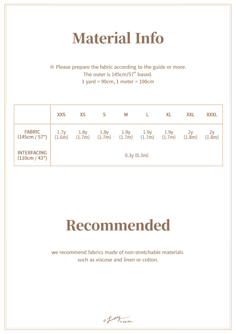 • Interfacing(Width 110cm/43”): 0.3y(0.3m)