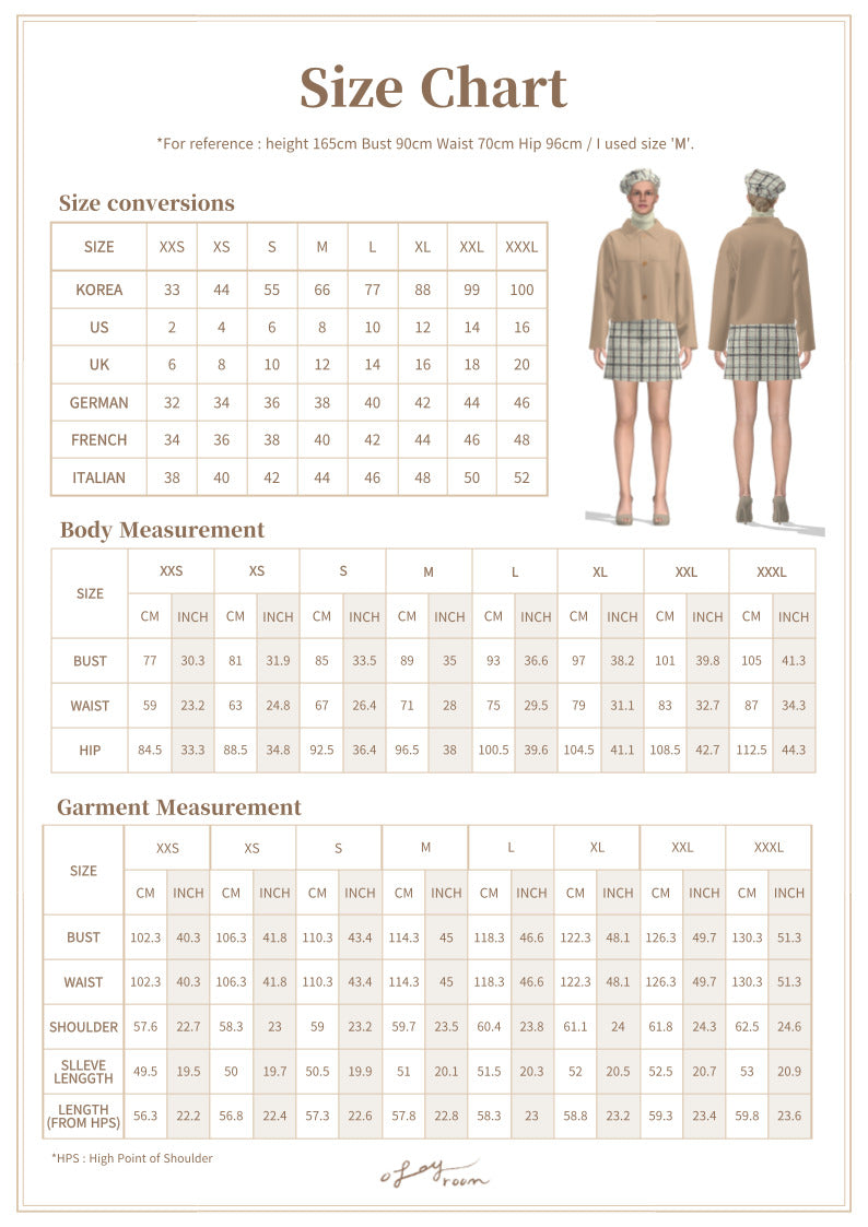 • Garment Bust: 102.3-130.3cm(40.3”-51.3“)