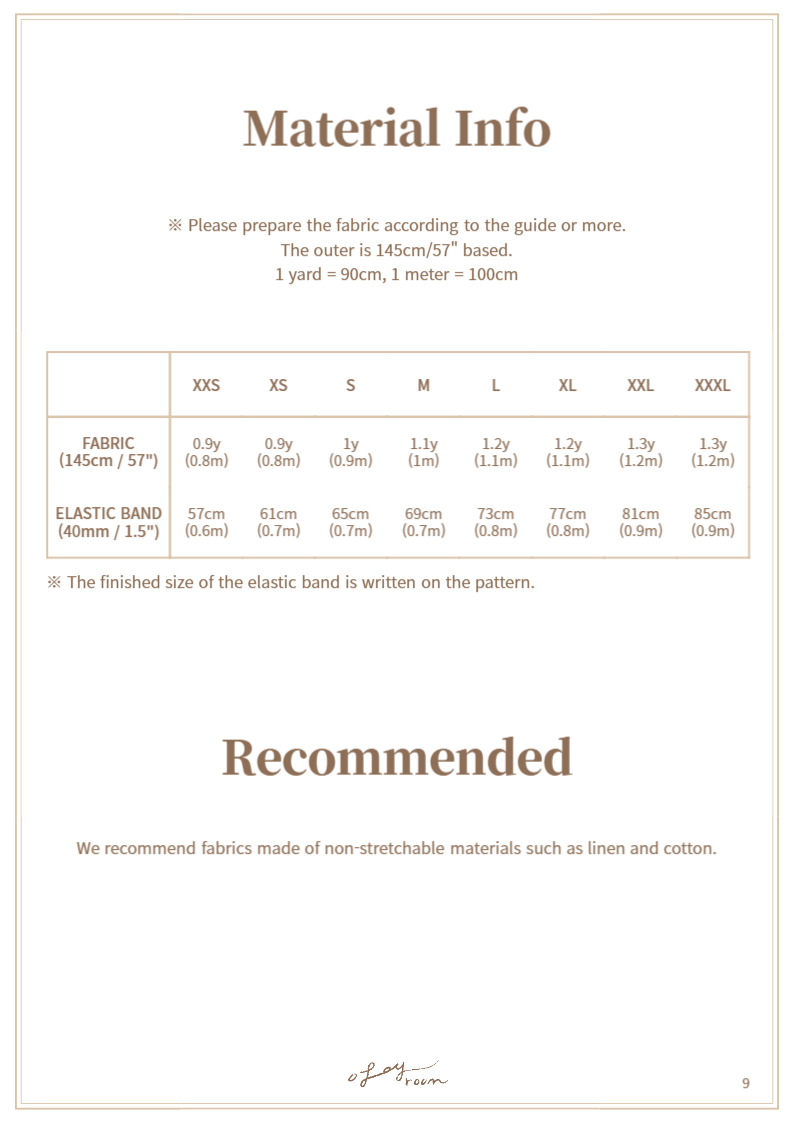 • Recommended fabric: Non-stretchable fabrics such as cotton, linen and viscose.