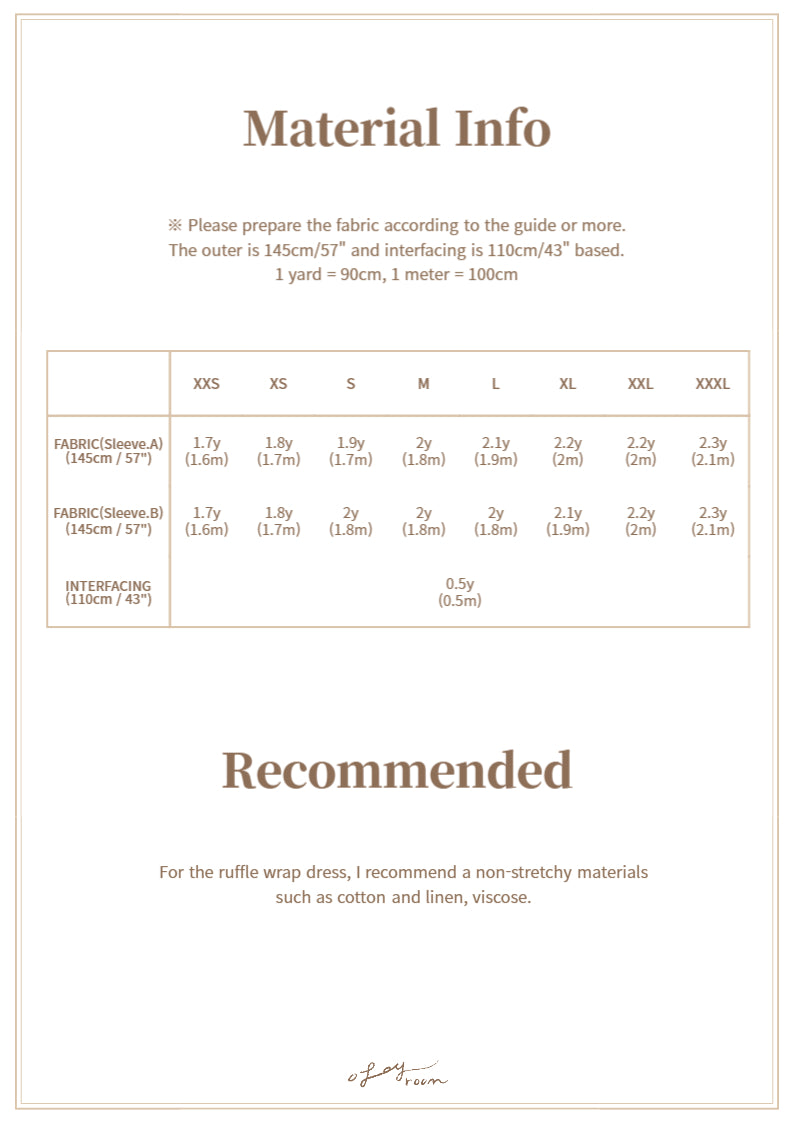 • Interfacing(Width 110cm/43”): 0.5y(0.5m)