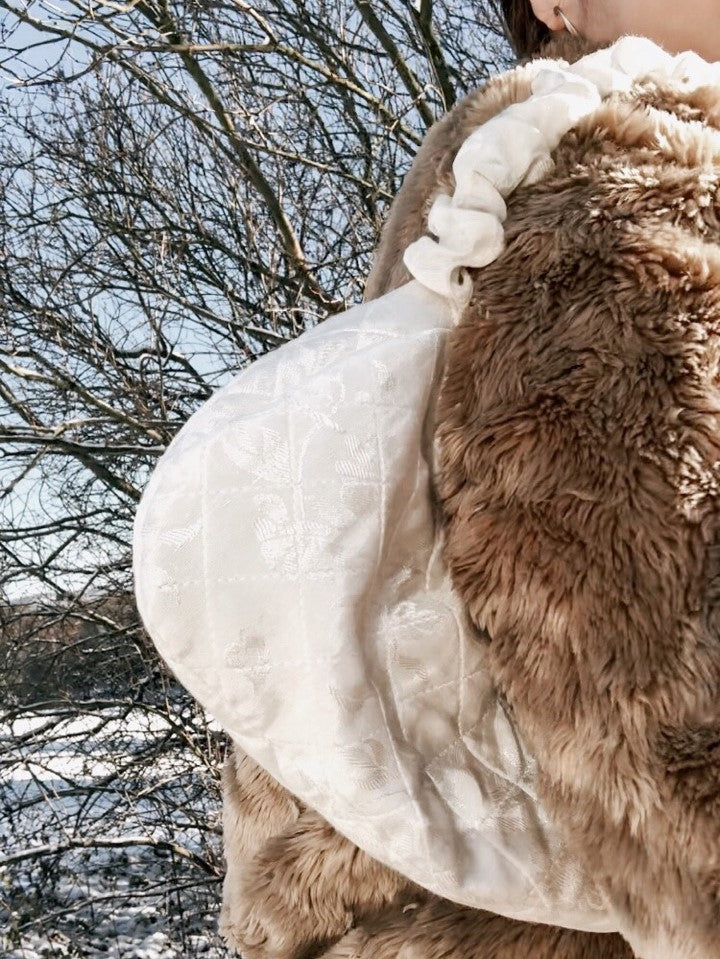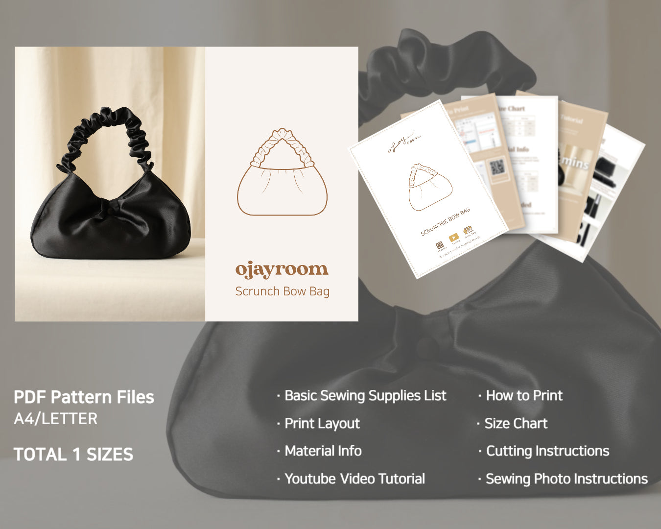 Scrunchie Bow Bag is a mini but striking, trendy bag. It requires a small amount of fabric, this is a great sewing project that can be done using scrap fabric. The sewing difficulty is 'Beginner'.