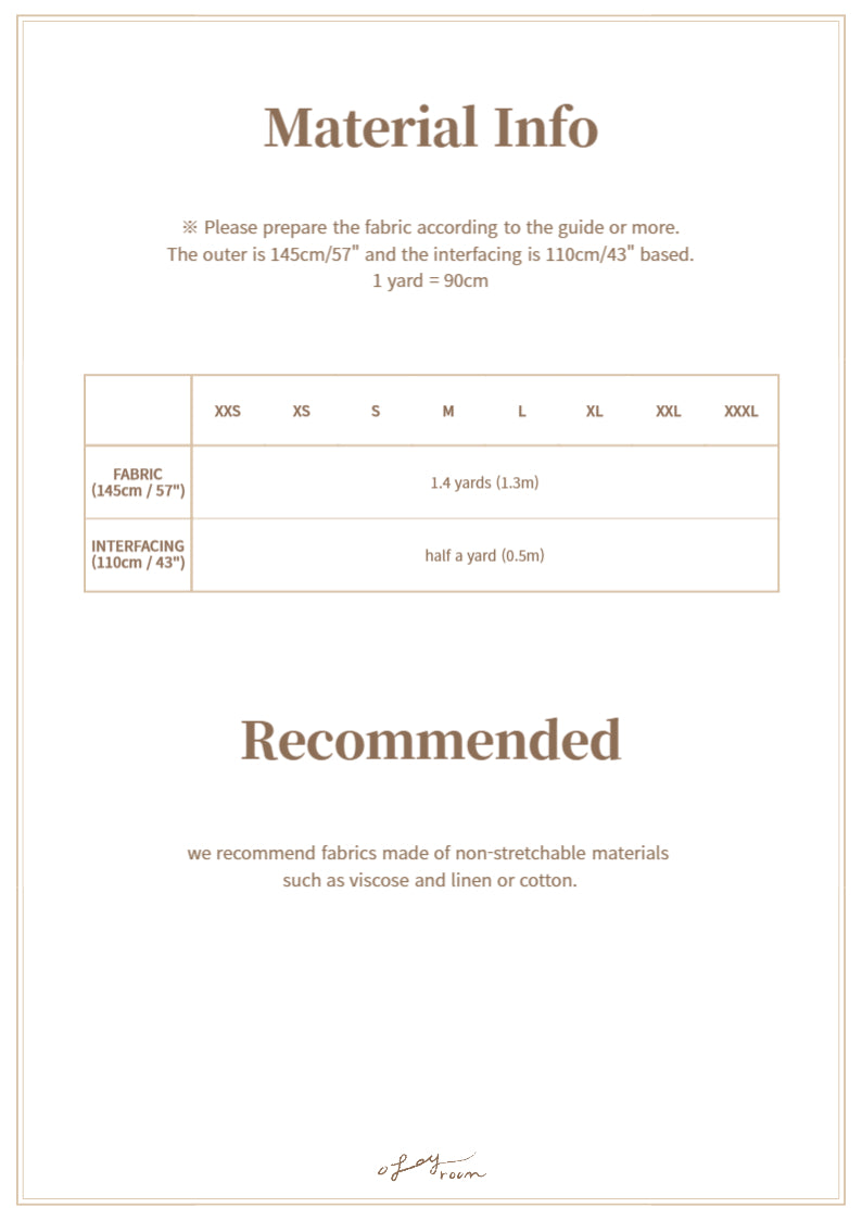 • Interfacing(Width 110cm/43”): 0.5y(0.5m)