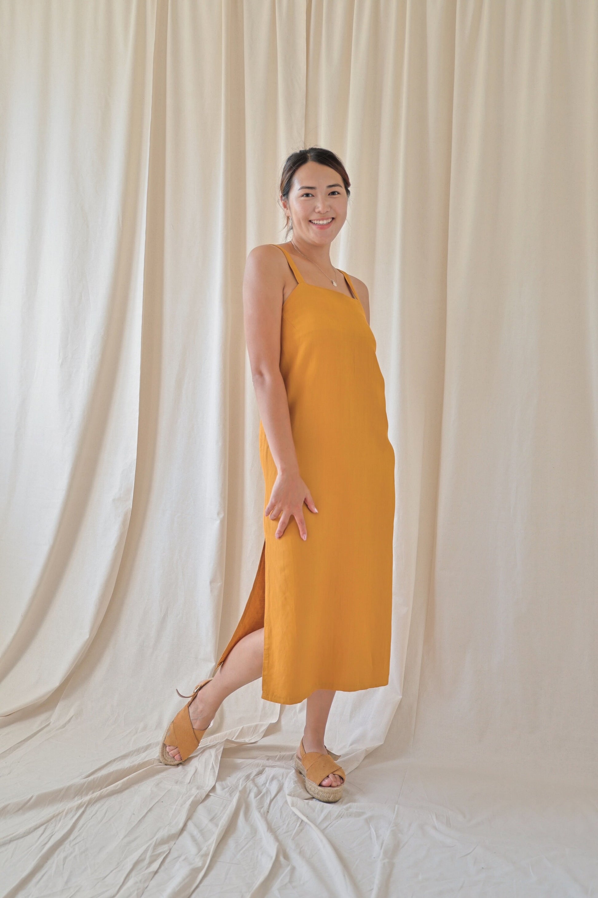 Slip Dress is a light and simple dress to wear in spring and summer. This item is good for styling and has long slits, making it comfy to walk. Also, for those who are uncomfortable with exposure, wear a T-shirt on top for a layered look. The sewing difficulty is 'Beginner'.