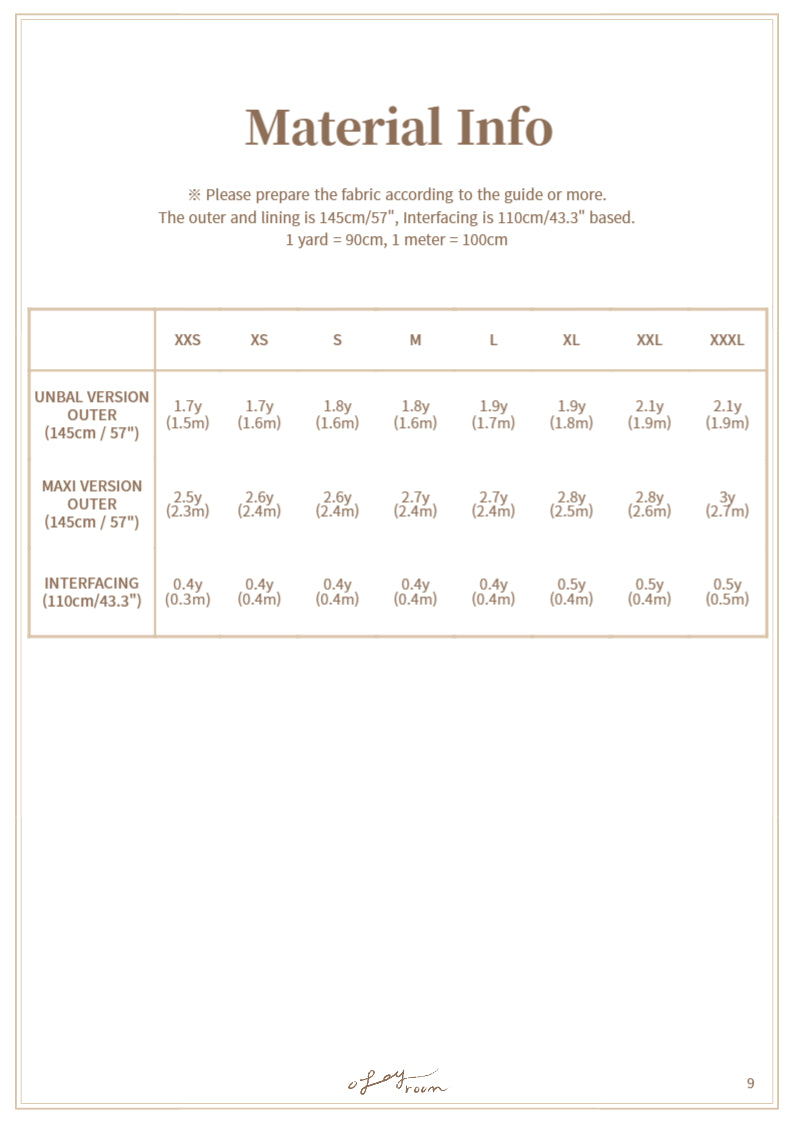 • Interfacing(Width 110cm/43.3") : 0.4-0.5y(0.3-0.5m)